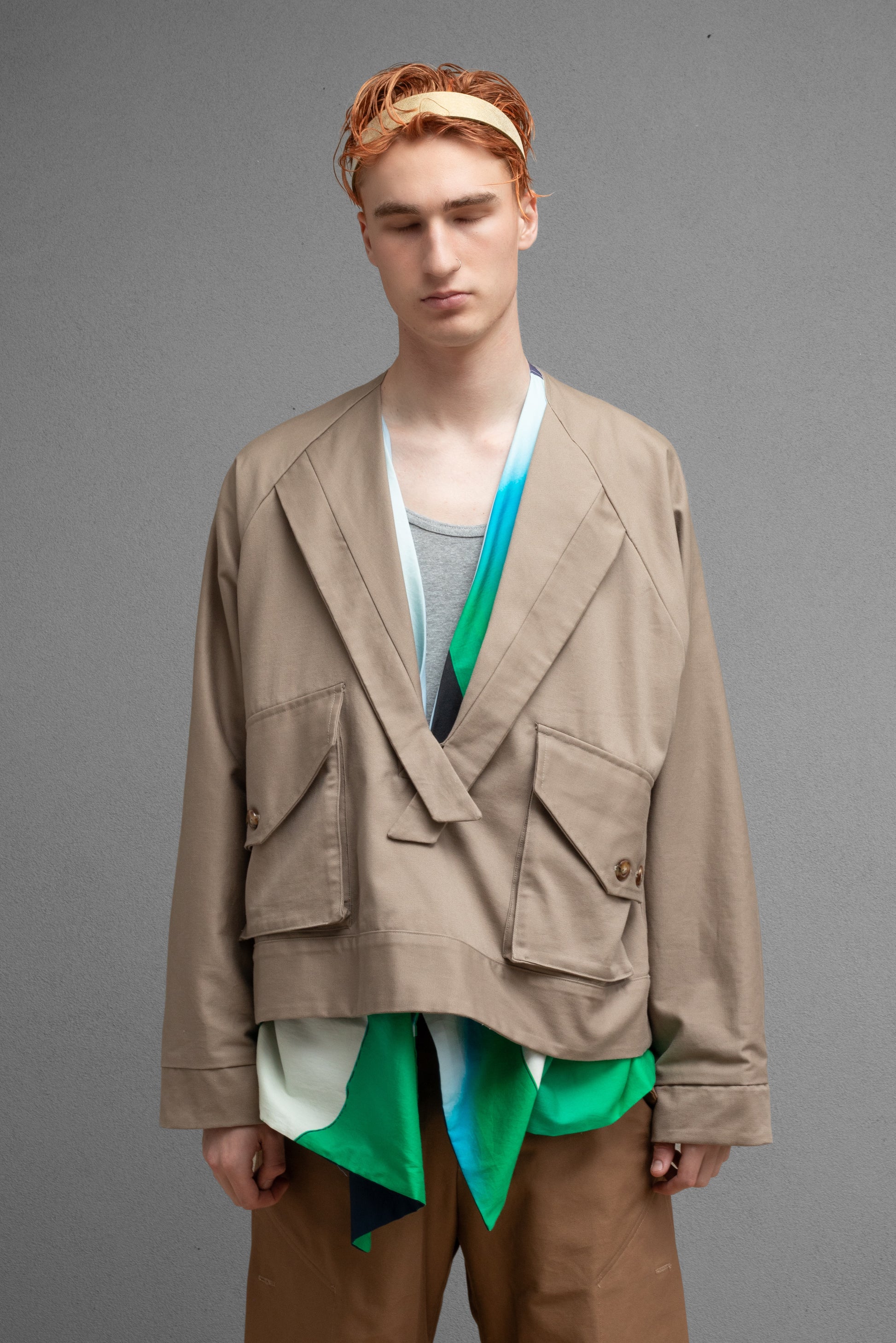 - 'Dissapearing’ wide shawl collar with tab extensions