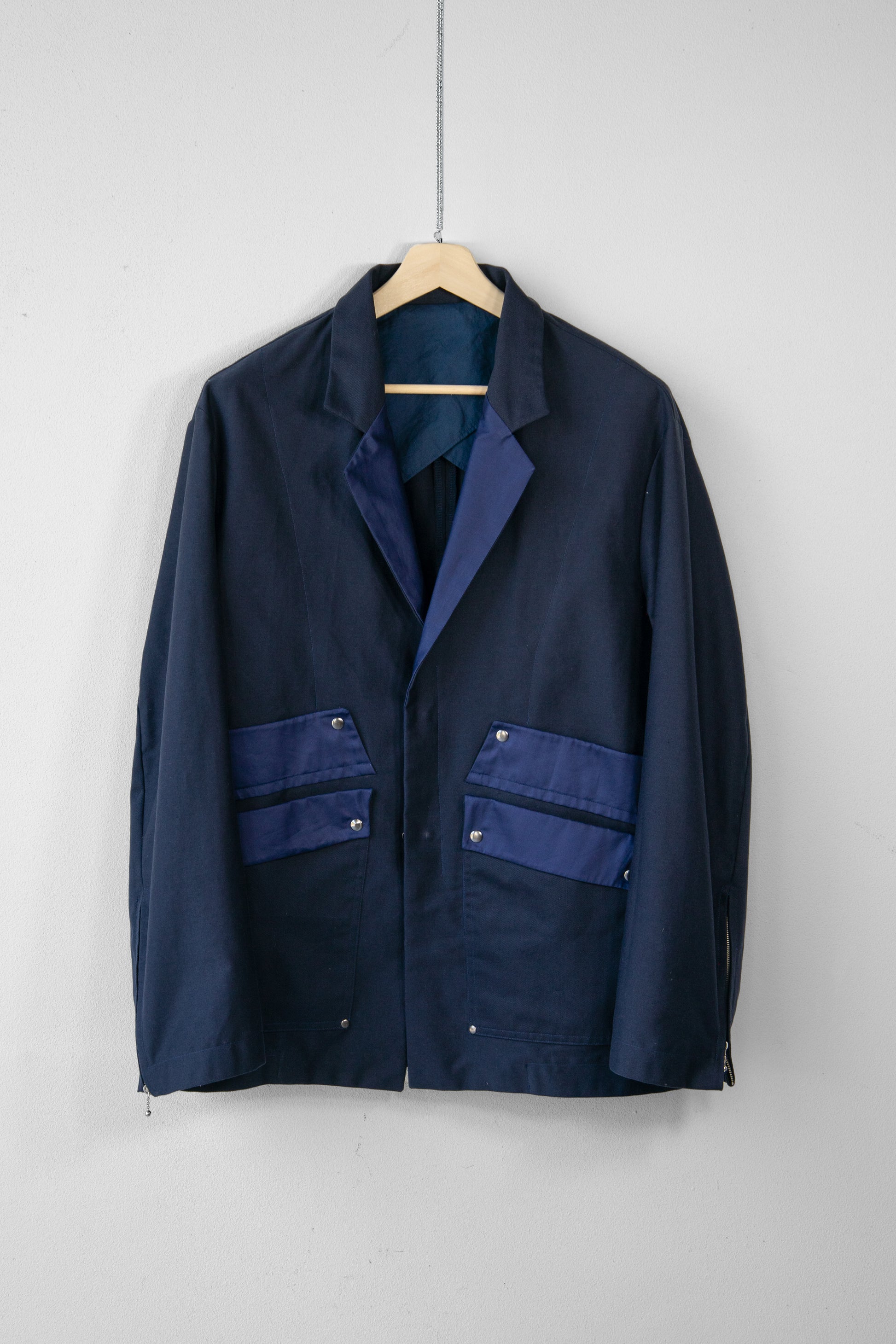 - Patch pockets with upturned contrasting flaps and upper foldback in contrasting satin , all with faux press stud detailing