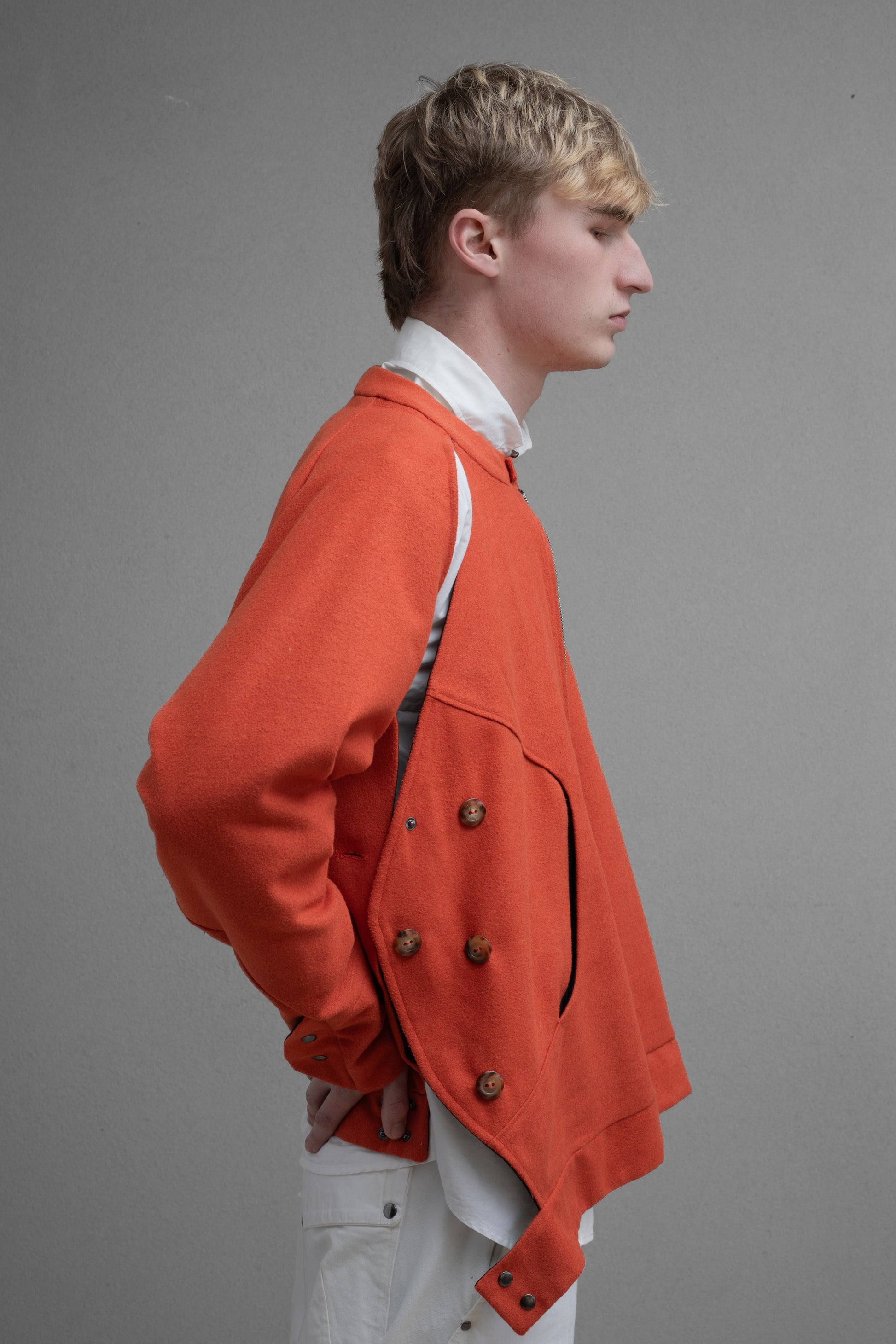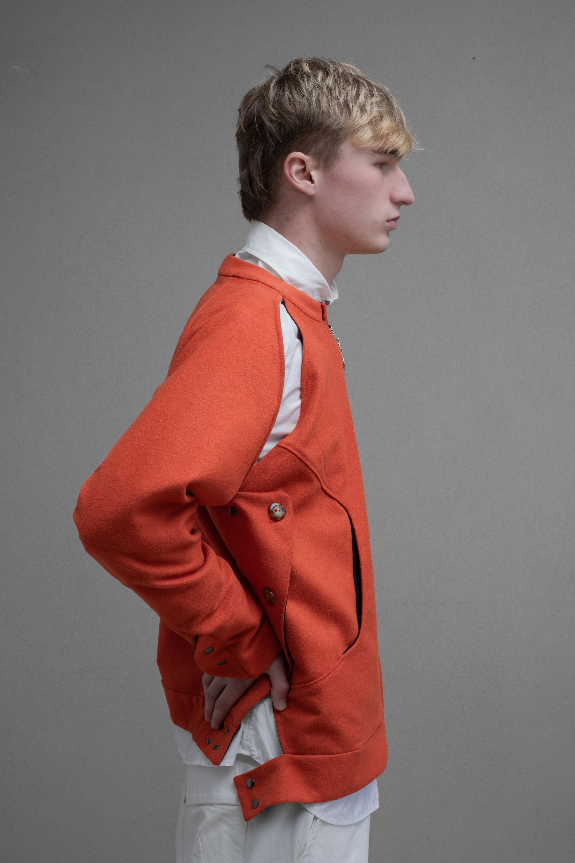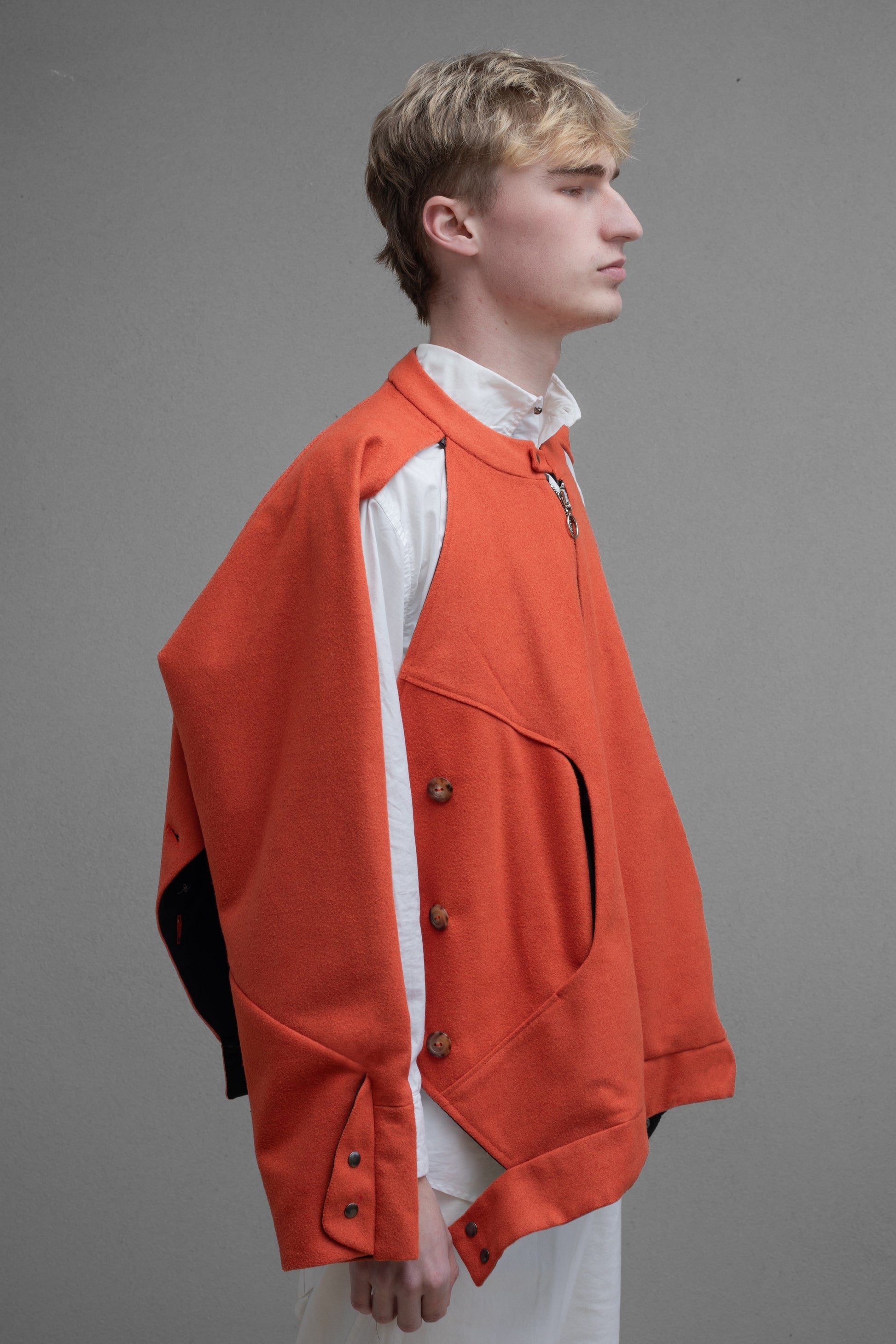 - Zip front collarless deadstock wool ‘pull apart’ jacket