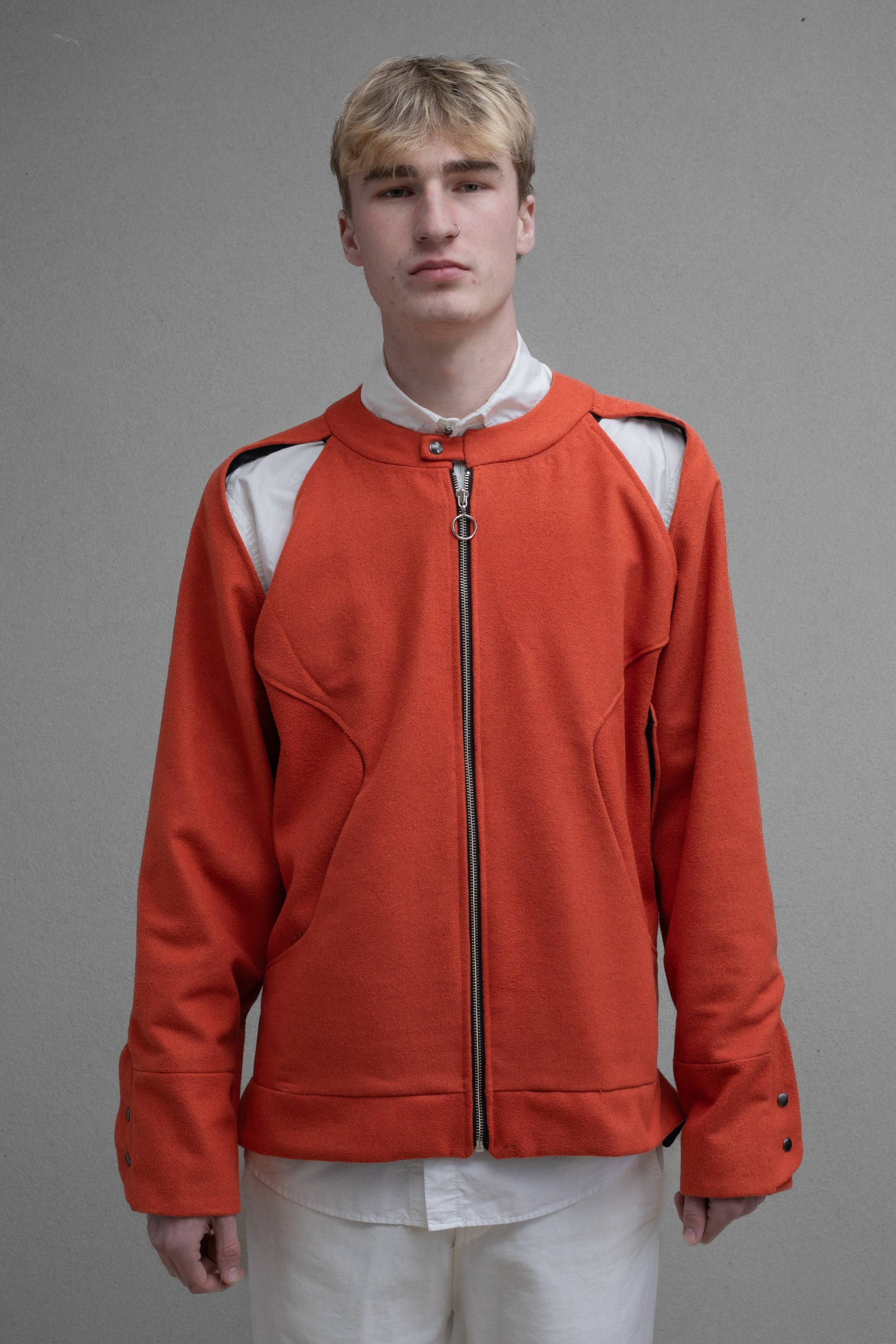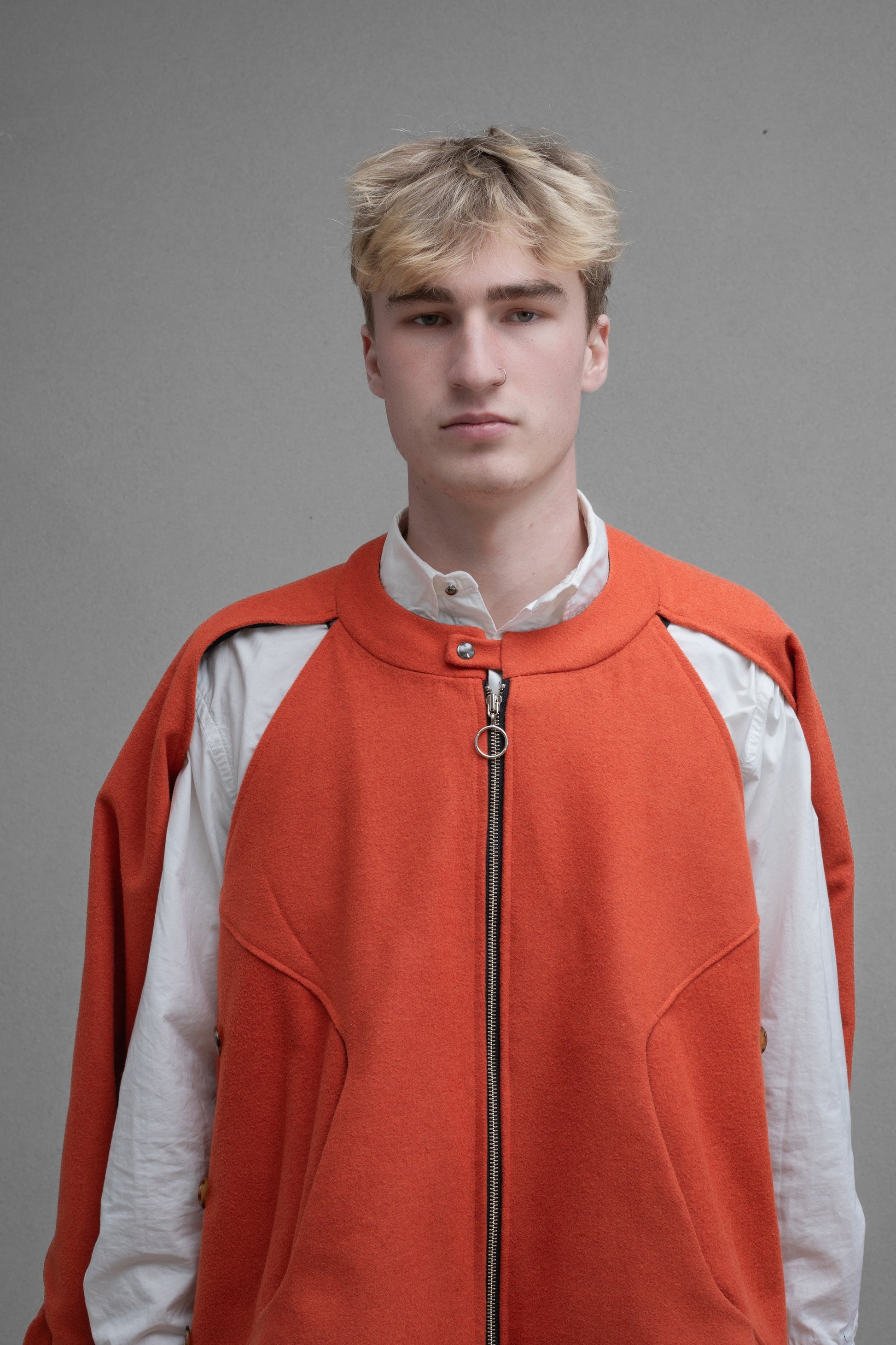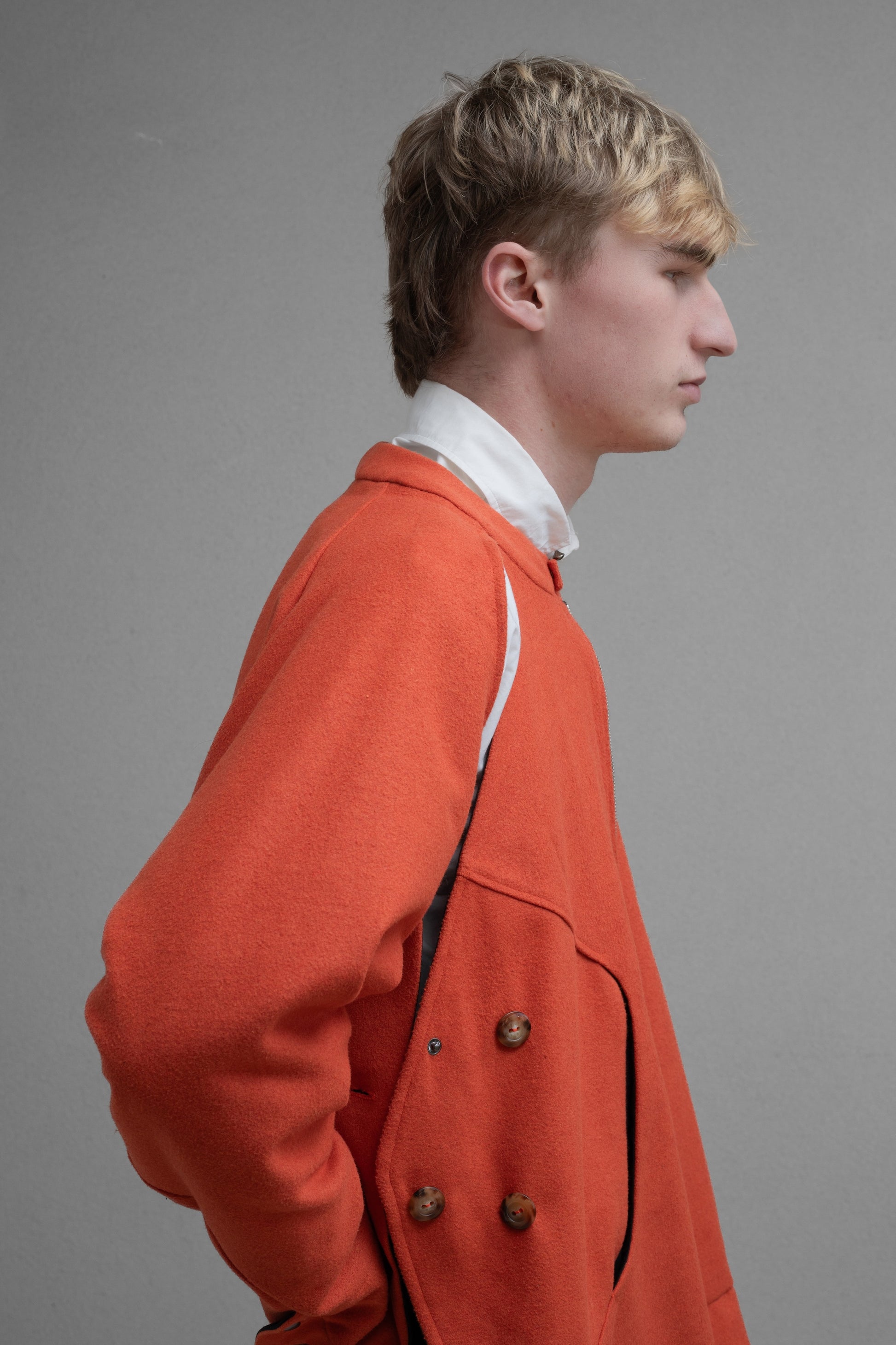 - Zip front collarless deadstock wool ‘pull apart’ jacket